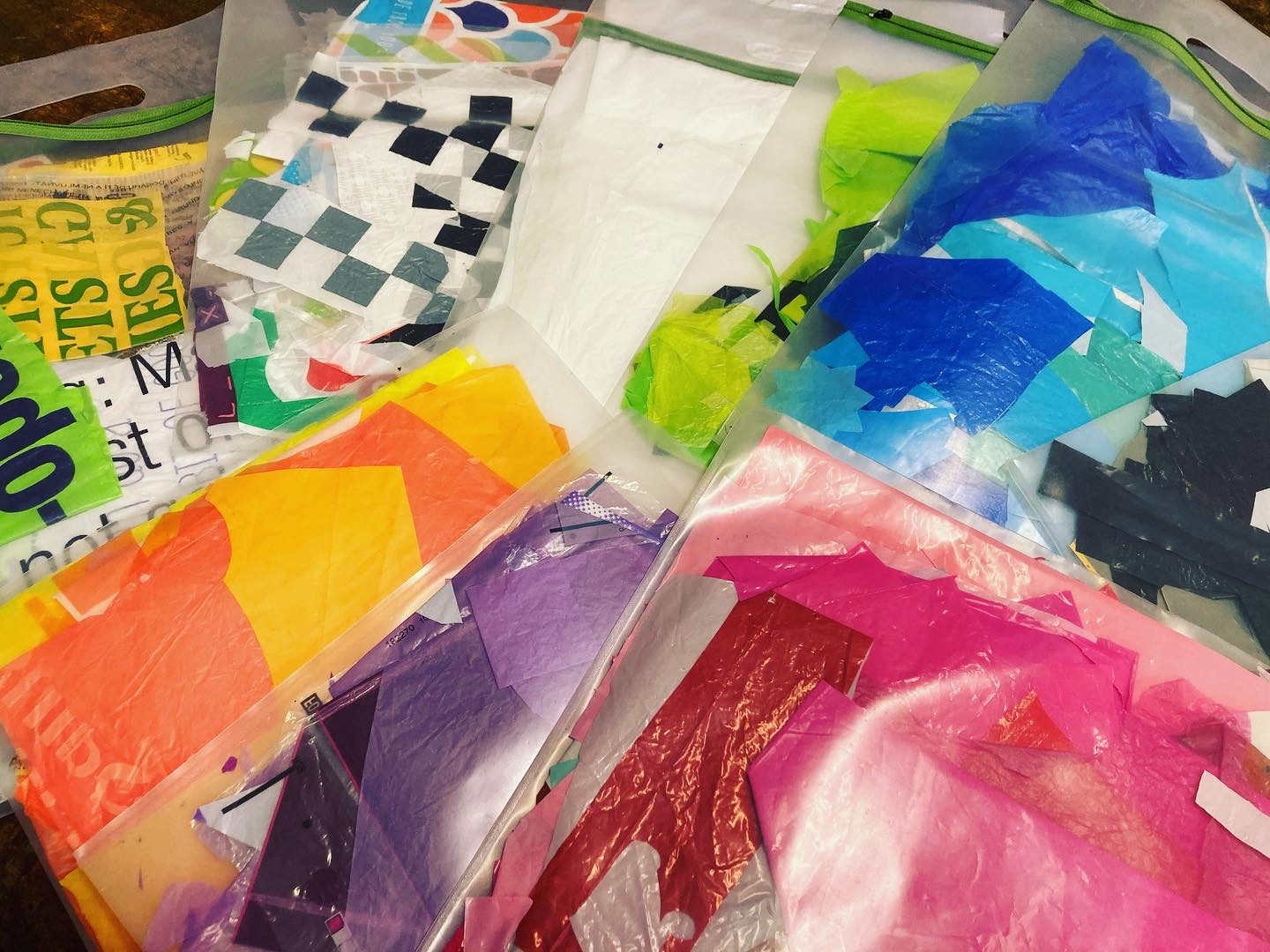 The project is a commission from local charity and arts organisation Ideas Test, and the challenge is to make a colourful picture or pattern out of used plastic bags, on the theme of hopes and dreams… What are you looking forward to? What makes you happy? Is it a person, an object or place, or something else?